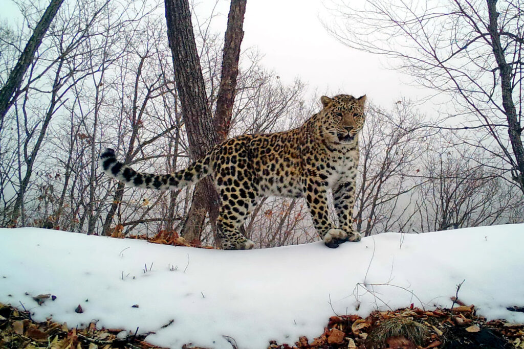Редких дальневосточных леопардов, обитающих сразу в двух странах, впервые